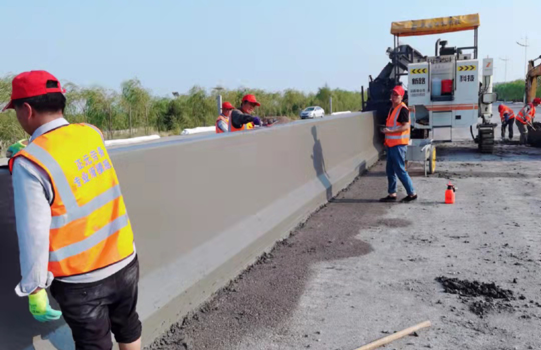 河南漯河橋梁防撞護欄滑模施工-NC1300滑模攤鋪機案例